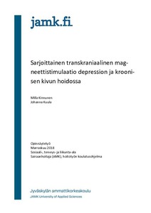 Depressio ja krooninen kipu ovat monisyisiä, yhteiskunnallisesti kuormittavia sairauksia, joiden diagnostiikka perustuu laajalti yksilön subjektiiviseen kokemukseen. Sekä depressiota että kroonista kipua voidaan hoitaa sarjoittaisella transkraniaalisella magneettistimulaatiolla. Hoitomuotoa tarjoavat Suomessa kaikki yliopistosairaalat sekä muutama keskussairaala. Tämän opinnäytetyön aiheena oli sarjoittaisen transkraniaalisen magneettistimulaation vaikutukset ja tehokkuus depression ja kroonisen kivun hoidossa.
