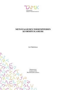 Metsäisillä valuma-alueilla tehtävät metsätalouden toimenpiteet lisäävät kiintoaineen ja ravinteiden huuhtoutumista vesistöihin. Kuormitusta aiheuttavia metsätalouden toimenpiteitä ovat ojitukset, metsän peitteellisyyden poistavat uudistushakkuut sekä uudistushakkuiden yhteydessä tehtävät maanmuokkaukset. Tämän hetkisen tietämyksen mukaan haitallisimpina päästöinä voidaan pitää vesistöihin päätyvää fosforia, typpeä ja kiintoainetta. Ravinteilla on vesistöjä rehevöittävä vaikutus, kun taas kiintoaine aiheuttaa vesistöjen samentumista ja pohjan liettymistä. Työn tilaajana toimi Suomen metsäkeskuksen Metsäbiotaloutta kestävästi Pirkanmaalla -hanke. Työn tavoitteena oli tutkia, onko mahdollista kehittää paikkatietoanalyysiin perustuva metsätalouden vesistökuormituslaskuri, jonka avulla voidaan laskea ja esittää eri metsätalouden toimenpiteiden aiheuttamat vuotuiset fosforin, typen ja kiintoaineen kuormitukset valuma-alueittain.