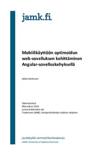 Opinnäytetyön tarkoituksena oli tutkia, kuinka kehitetään mobiilikäyttöön optimoitu websovellus käyttäen Angular-sovelluskehystä, ja kehittää sellainen toimeksiantajan asiakasyritykselle heidän vaatimuksien mukaisesti. Sovelluksen käyttöliittymä toteutettiin käyttäen Angular Material -ulkoasukomponenttikirjastoa.