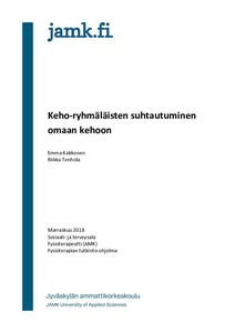 Opinnäytetyö toteutettiin tapaustutkimuksena, jossa tarkasteltiin Keho-ryhmässä tunnustelevan kuntosaliharjoittelun sekä itseilmaisun yhteyttä omaan kehoon suhtautumiseen, hyödyntäen niitä interventiomenetelminä. Tavoitteena oli selvittää, muuttuiko tutkittavien suhtautuminen omaan kehoon interventioiden aikana. Opinnäytetyön tarkoituksena oli lisätä tietoa psykofyysisestä fysioterapiasta sekä fysioterapian että muiden ammattikuntien kenttään, ja antaa myös työkaluja opinnäytetyön toimeksiantajalle.