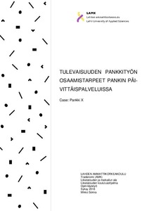 Tämän opinnäytetyön tarkoituksena oli selvittää tulevaisuuden osaamistarpeet pankkityössä ja erityisesti pankin päivittäispalveluissa. Tavoitteena oli saada esiin, mitä osaamista finanssialalla työskentelevät ajattelevat tarvitsevansa ja minkälaisen osaamisen tarve yleistyy ja millä keinoin arvioitua osaamista toivotaan kehitettävän. Aihe valittiin finanssialan digitalisoitumisen ja osaamistarpeiden muutoksen takia. Finanssialan muutosten takia tulevaisuuden osaamistarpeet ovat erilaiset kuin nykyään. Opinnäytetyö tehtiin toimeksiantajalle, jolle oli hyötyä siitä, millä keinoin työntekijät toivoisivat osaamistaan kehitettävän.