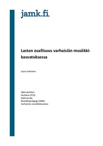 Lasten osallisuus on ollut varhaiskasvatuksessa ajankohtainen aihe ja tutkimuksen kohde jo viimeiset kymmenen vuotta, mutta sitä ei ole aiemmin juuri huomioitu varhaisiän musiikin-opetuksessa. Syksyllä 2018 käyttöön otettu uusi taiteen perusopetuksen opetussuunni-telma korostaa myös osallisuutta.