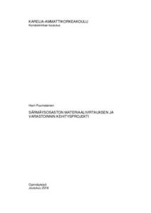 Tämä opinnäytetyö tehtiin Ouneva Oy: n ohutlevytehtaalle Tuupovaarassa. Aiheena oli varastoinnin Lean-kehitys särmäys- ja kokoonpano-osastoilla, keskittyen varastoinnin ja materiaalivirtauksen parantamiseen. Varastointijärjestelyissä oli paljon parannetta-vaa: hyllyjä ei ollut merkitty ja osa puolivalmisteista odotti seuraavaa työvaihetta lattioil-la. Tilaa oli käytettävissä vähän ja tuotteiden etsimiseen kului paljon aikaa. Tuotteiden- ja tuote-erien tunnistamiseen liittyvät työkortit olivat usein kateissa ja saattoivat repeillä.