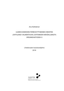 Valmentavan johtajuuden on todettu saavan työntekijät kehittämään itse itseään ja samalla sen on todettu vaikuttavan positiivisesti esimiehen omaan kehittymiseenkin. Tutkimuksessa selvitettiin, millaisia asioita uudelle esimiehelle tulisi perehdyttää ihmisten johtamisesta valmentavan johtajuuden näkökulmasta. Koska työ käsittelee uuden esimiehen perehdyttämistä, tutkittiin samalla mitä uuden esimiehen tulee ymmärtää esimiehen roolista ja uuden roolin tuomista haasteista. Tutkimuksessa käsiteltiin valmentavan johtamisen keskeisimpiä taitoja ihmisten johtamisen kannalta ja tutkimus toimii taustamateriaalina organisaatiossa X valmistuvalle uuden esimiehen perehdyttämiskirjalle.