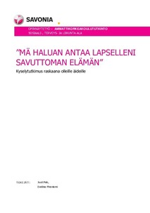 Suomessa raskausaikana tupakoi vuonna 2017 12,5 % odottavista äideistä, Suomessa tupakoidaan eniten Pohjoismaissa. (Perinataalitilasto 2017). Suomessa jopa noin 10 % tupakoi läpi raskauden. Tupakoivista odottajista suurin osa on nuoria, alle 20-vuotiaita. (Ekblad, Gissler, Korkeila ja Lehtonen 2015). Tutkimuksen aiheena on raskaana olevien ja sitä suunnittelevien äitien ja perheiden savuttomuuden tukeminen. Tutkimus on kvalitatiivinen eli laadullinen tutkimus, tutkimus toteutetaan laadullisella kyselyllä.
