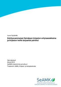 Tämän opinnäytetyön aiheena oli tutkia Seinäjoen pääkirjaston ja sen lähikirjastojen, eli Nurmon kirjaston, Peräseinäjoen monipalvelukirjaston ja Ylistaron monipalvelukirjaston tarjoamia palveluja asiakkaille, joilla on diagnosoitu vamma tai vaurio ymmärrys- ja oppimiskyvyn alueella. Tavoitteena oli selvittää, löytyykö kirjastoilta kehitysvammaisille asiakkaille suunnattua aineistoa, tapahtumia tai muita palveluja. Haluttiin myös selvittää, millaiseksi kirjaston henkilökunta kokee kehitysvamman tai -vaurion omaavan asiakkaan ja miten palvelutilanne tapahtuu. Tavoitteena oli kerätä myös kehitysvammaisten asiakkaiden kokemuksia kirjastonkäytöstä Seinäjoella ja selvittää, minkälaisia palveluita he haluavat. Sekä kirjaston henkilökunnalta että kehitysvammaisilta asiakkailta tiedusteltiin kehittämisehdotuksia kirjastolle.