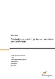 Tämän opinnäytetyön tarkoituksena on kuvata, miten ikääntyneiden asiakkaiden toimintakykyä arvioidaan päivätoiminnassa ja kuinka tietoa hyödynnetään hoidon suunnittelussa. Tutkimus toteutettiin sähköisellä kyselylomakkeella neljässä eri päivätoimintayksikössä.