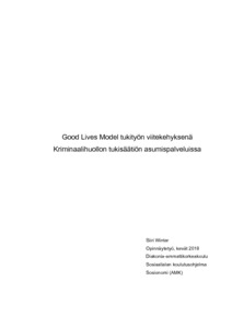 (Diakonia-ammattikorkeakoulu, 2018)Winter, Siiri. Good Lives Model tukityön viitekehyksenä Kriminaalihuollon tukisäätiön asumispalveluissa. Helsinki, kevät 2018, 43 s., 3 liitettä. Diakonia-ammattikorkeakoulu. Sosiaalialan koulutusohjelma, Sosionomi ... -