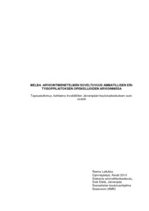 (Diakonia-ammattikorkeakoulu, 2010)Työssäni tuon esille erityisopetuksen, erityisopiskelijan ja ammatillisen opetuksen suhdetta tänä päivänä. Kerron myös MELBA -arviointimenetelmän käytöstä ja siitä, minkälaisia tuloksia auto-alan erityisopiskelijat saivat ... -