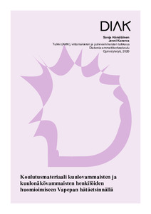 (2026)Kehittämispainotteisessa opinnäytetyössä toteutettiin koulutusmateriaali Vapaaehtoiselle pelastuspalvelulle. Koulutusmateriaalin aihe on kuulovammaisten ja kuulonäkövammaisten henkilöiden huomioiminen hätäetsinnällä. ... -
