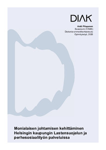 (2026)Opinnäytetyön tarkoituksena oli kehittää monialaisten tiimien johtamista Helsingin kaupungin Lastensuojelun ja perhesosiaalityön palveluissa. Tämän kehittämisprosessin tavoitteena oli kehittää monialaista johtamista näissä ... -