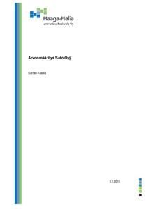 Opinnäytetyön tavoitteena on määritellä arvo suomalaiselle asuntosijoitusyhtiölle Sato Oyj:lle. Työssä keskitytään taloudellisten tunnuslukujen ennustamiseen, analysointiin ja sitä kautta yhtiön arvon määrittämiseen. ...