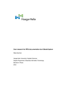 The objective this thesis was to conduct user research for RPA documentation tool QAutoCapture which is development by Finnish company QAutomate. The tool uses screen capture technology for documenting RPA processes which ...