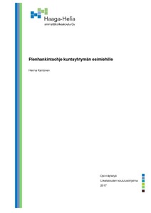 (Haaga-Helia ammattikorkeakoulu, 2017)Tämä opinnäytetyö on produktityylinen eli toiminnallinen opinnäytetyö, joka tehtiin toimeksiantona Helsingin seudun ympäristöpalvelut –kuntayhtymälle HSY. Toimeksiannon aiheena on laatia ohje pienhankinnoista HSY:n ... -