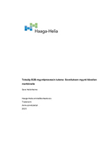 (2025)Tekoäly muuttaa yritysten B2B-myyntiprosesseja, sillä sen avulla voidaan automatisoida päivittäisiä myyntitehtäviä. Tämän toiminnallisen opinnäytetyön tavoitteena oli tutkia, miten tekoälyä voi hyödyntää käännössovelluksen ...