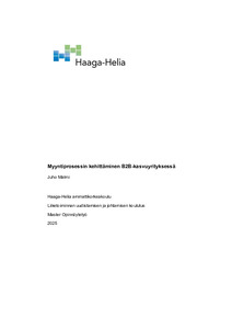 (2025)1. Johdanto. Opinnäytetyö käsittelee B2B-kasvuyrityksen myyntiprosessin kehittämistä ja sen merkitystä liiketoiminnan kasvulle ja kannattavuudelle. Työn tavoitteena oli analysoida nykyinen myyntiprosessi ja löytää keinoja ... -