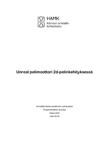 (2025)Opinnäytetyön tavoitteena oli tutkia Unreal pelimoottorin soveltuvuutta 2D pelinkehitykseen sekä tehdä moottoria hyödyntäen pieni 2D roguelike peli. Työn teoreettinen osa käsittelee Unreal engineä, sen toimintaperiaatteita, ... -