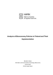 (2025)The aim of this thesis is to examine and evaluate the evolution of bioeconomy policy in Finland. The understanding and realization of Finnish bioeconomy policies are increased in this thesis by assessing the initial ... -