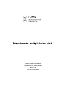 (2026)Tässä opinnäytetyössä tarkastellaan peruskouluikäisten lasten ja nuorten kokemuksia omasta kotikylästään sekä heidän näkemyksiään kotikylän merkityksistä ja tulevaisuuden kehittämistarpeista. Työn taustalla on Kehittämisyhdistys ... -