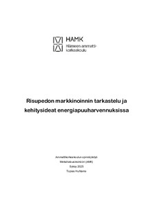 (2025)Opinnäytetyössä selvitettiin, mitkä tekijät vaikuttavat metsänomistajien päätökseen hyödyntää Risupedolla toteutettavaa energiapuuharvennusta ja miten menetelmän markkinointia voidaan kehittää kohderyhmälle paremmin ... -