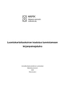 (2026)Tässä opinnäytetyössä koulutettiin luontokartoituskoira havaitsemaan kirjanpainajatuhoja. Tavoitteena oli selvittää, voidaanko kirjanpainajan hajun tunnistamiseen koulutettua luontokartoituskoiraa käyttää tunnistamaan ... -