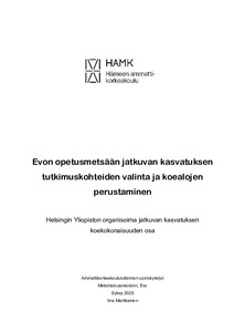 Evon opetusmetsään jatkuvan kasvatuksen tutkimuskohteiden valinta ja koealojen perustaminen