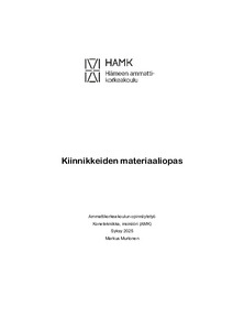 (2025)Tämän opinnäytetyön tavoitteena oli laatia kiinnikkeiden materiaalinvalintaopas, joka auttaa asiakkaita ja myyjiä valitsemaan oikeat kiinnikemateriaalit sekä pinnoitteet erilaisiin olosuhteisiin. Työ toteutettiin Vantaan ... -
