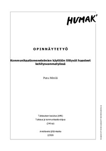 (2026)Tämän kehittämistyön tavoitteena oli luoda Häirintäyhdyshenkilökoulutusta tukeva opas SAMOK – Suomen opiskelijakuntien liitolle. Työ toimii jatkona jo loppuneeseen Yhdenvertaisuutta korkeakouluihin -hankkeeseen, joka toimi ... -