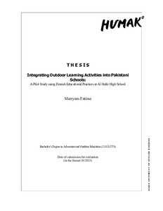 (2025)This thesis explores the feasibility of integrating Finnish-inspired outdoor learning practices into Pakistani school settings. Through a remote pilot study at Al Hafiz High School, teacher-facilitated activities were ... -