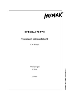 (2023)Opinnäytetyöni aiheena on tunnetaidot eläinavusteisesti, jotka toteutetaan Apple Tree Ranch – yrityksessä. Tällä pyritään kehittämään kyseisen yrityksen toimintaa Opinnäytetyön teoreettinen osa sisältää eläinavusteisuuden ... -