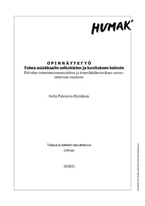 (2023)Opinnäytetyössäni kartoitin Niemikotisäätiön kokemusasiantuntijakoulutuksen ja sen ympärille muodostuneen toiminnan vahvuuksia ja kehittämiskohteita koulutuksen käyneiden kokemusasiantuntijoiden kuvailemina. Tutkimuksen ... -