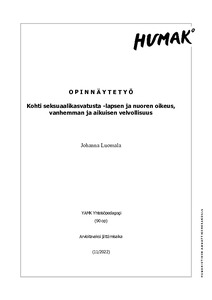 (2022)Seksuaalisuus on osa jokaisen elämää syntymästä hautaan. Jokaisella on myös seksuaalioikeudet ja oikeus tietoon seksuaalisuudesta. Vanhemmat ovat ensisijaisesti vastuussa lapsen kasvatuksesta ja näin ollen myös ... -