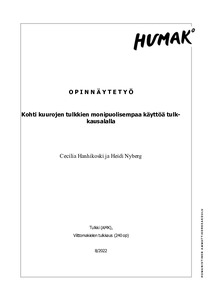 (2022)Opinnäytetyössä selvitetään, voisiko natiivien kuurojen tulkkien käyttöä laajentaa kaikkien tulkinkäyttäjien saataville ja millä tavalla toteutettuna se olisi mahdollista tulkinkäyttäjien ja tulkkien mielestä. Lisäksi ... -