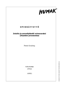 (2022)Tämän opinnäytetyön tarkoituksena oli selvittää, minkälaisia vaikutuksia intuitiivisella ajattelulla ja serendipisyydellä on yhtyeiden prosesseissa. Tavoitteena oli tutkia aihetta yleisesti, mutta löytää tilaajalle uusia ... -