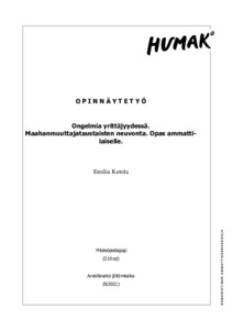 (2021)Tämän opinnäytetyön tarkoituksena oli tutkia millaisia haasteita maahanmuuttajayrittäjät kokevat yrittäjyydessä. Tämän lisäksi opinnäytetyössä selvitettiin miten ohjaaja voisi tukea maahanmuuttajayrittäjää. Opinnäytetyön ... -