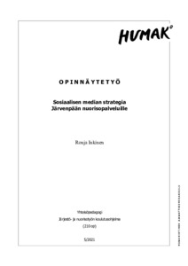 (2021)Opinnäytetyön tarkoituksena oli analysoida ja kehittää Järvenpään nuorisopalveluiden sosiaalisen median käyttöä vastaamaan nuorisotyön tavoitteita ja tehdä sen käytöstä suunnitelmallista. Vaikka Järvenpään nuorisopalvelut ... -