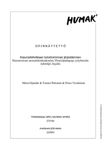Resurssitehokkaan tutortoiminnan järjestäminen: Humanistisen ammattikorkeakoulun Yhteisöpedagogi, työyhteisön kehittäjä -linjalla