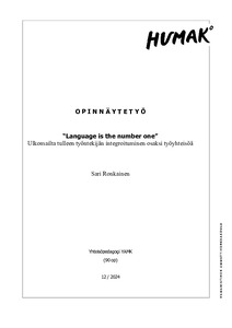 Language is the number one. Ulkomailta tulleen työntekijän integroituminen osaksi työyhteisöä.