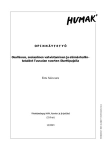 Osallisuus, sosiaalinen vahvistaminen ja elämänhallintataidot Tuusulan nuorten Starttipajalla