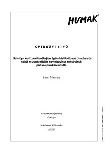 Selvitys kulttuurituottajien työn kielitaitovaatimuksista sekä muunkielisille soveltuvista tehtävistä pääkaupunkiseudulla