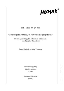 (2024)Tämän oppinäytetyön tarkoituksena oli kehittää toimintakeskus Panskiksen kiusaamisen vastaista työskentelyä ja selvittää millainen toimintamalli tarvitaan kiusaamiseen puuttumiseksi. Opinnäytetyön tilaaja oli ... -