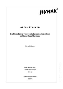 (2024)Tutkimuksellisen kehittämistyön tavoitteena oli tunnistaa osallisuus ja vuorovaikutus sekä kehittää niiden osuutta salibandytapahtumien toteuttamisessa. Lähestymistavaksi valitsin toimintatutkimuksen, jotta sain yhdistettyä ... -