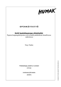 (2024)Tämän opinnäytetyön tarkoituksena oli kartoittaa Espoon kaupunginkirjaston roolia alueellisessa verkostotyössä ja selvittää minkälaista tukea kirjaston kanssa tehtävä yhteistyö antaa verkoston jäsenille. Opinnäytetyön ... -