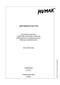 (2024)Tämä opinnäytetyön tilaajana oli Helsingin normaalilyseo. Työn tavoitteena oli lisätä oppilaiden osallisuutta samalla kehittäen koulun jälkeistä kerhotoimintaa sekä järjestää alakoulun oppilaille yhteinen kirjatapahtuma. ... -