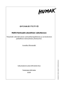 MARS-festivaalin alueellinen vaikuttavuus: nykyhetki sekä tulevaisuus ammattilaistapahtuman ja sen keskeisten paikallisten sidosryhmien yhteistyössä.