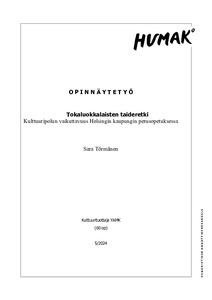 (2024)Tässä opinnäytetyössä tarkasteltiin Helsingin kaupungin perusopetuksen kulttuuripolkua, erityisesti siihen kuuluvaa Tokaluokkalaisten taideretkeä. Tokaluokkalaisten taideretki on neljän toimijan, Kiasman, Helsingin ... -