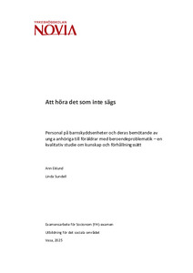 Att höra det som inte sägs. Personal på barnskyddsenheter och deras bemötande av unga anhöriga till föräldrar med beroendeproblematik - en kvalitativ studie om kunskap och förhållningssätt.