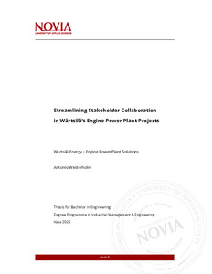 (2025)This thesis investigates how stakeholder collaboration and process visualization can be improved during the sales phase of Wärtsilä’s engine power plant projects. As Wärtsilä operates in a complex, project-based environment, ... -