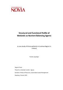 Structural and Functional Profile of Wetlands as Nutrient Balancing Agents: A case study of three wetlands in Uusimaa Region in Finland