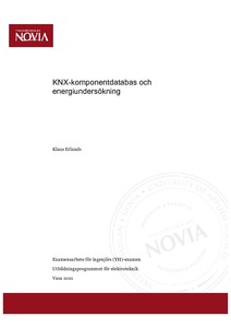 (Yrkeshögskolan Novia, 2011)Detta examensarbete behandlar planerandet och skapandet av en KNX komponentdatabas samt beräkningsplaneringar för en KNX planeringsapplikation, dessutom behandlar den en energiundersökning där standardelinstallationer och ...
